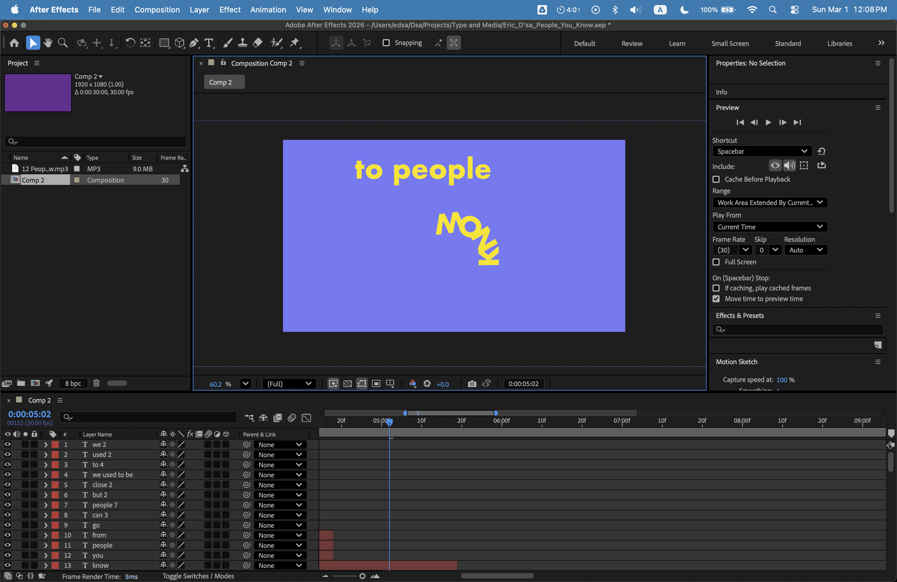 Now that I knew what the color theme and copy looked like on a screen, I started animating the lyrics.